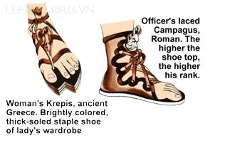 Người Hi Lạp chú trọng đến thiết kế và thẩm mỹ, trong khi đó, người La Mã lại phát minh ra loại dép dã chiến giúp cho quân đoàn của họ đi chinh chiến khắp nơi trên thế giới. Vào kỷ nguyên của các đế chế giàu có hơn về sau, dép quai lại được chú trọng đến tính thẩm mỹ, thường được trang trí kèm với vàng và đá quý.
