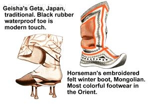 Giày dép luôn giữ một vị trí quan trọng trong trang phục. Cho đến những năm gần đây, vẫn có rất nhiều loại giày được thiết kế để dùng cho những sự kiện đặc biệt. Trong số đó, có những đôi được thiết kế và trang trí rất cầu kỳ, nhấn mạnh tầm quan trọng và sự khác biệt so với trang phục chính của người mang nó.