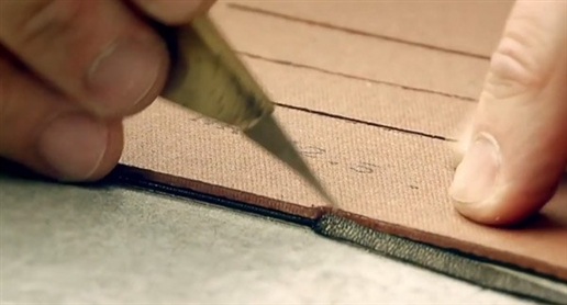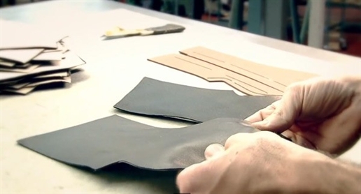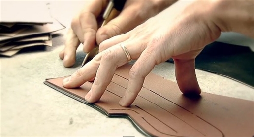 Sau khi vẽ xong khuôn trên một miếng da khác, những người thợ lành nghề sẽ đặt miếng da này lên trên miếng da thật để tạo hình.