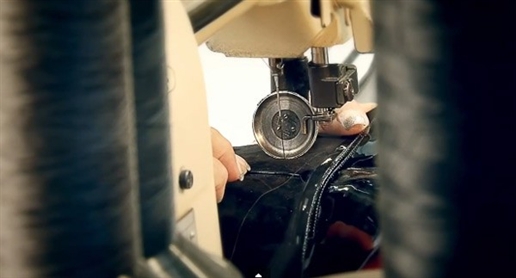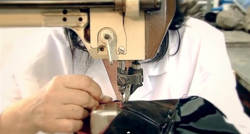 Sau khi cắt xong, các miếng da sẽ được khâu ráp lại với nhau để tạo hình ban đầu cho chiếc giày.