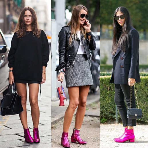 Từ boots cao đến gối hay "những đôi ủng" xinh xắn màu hồng rực đều lọt vào tầm ngắm của giới fashionista. Màu sắc tươi sáng, cộng thêm trào lưu ánh bạc, ánh kim giúp những set đồ ngày đông bớt đi sự tẻ nhạt, ảm đạm và trẻ trung hơn rất nhiều.