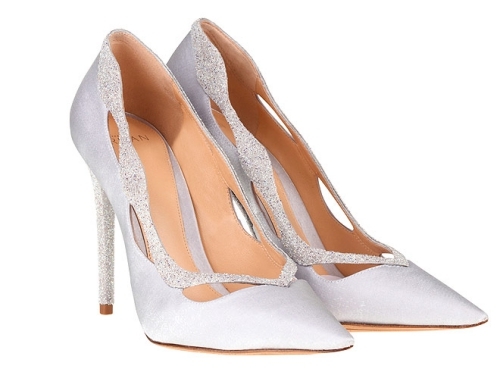 Giày thủy tinh trắng của nhà mốt Alexandre Birman có phom dáng Johanna pump (giày bít mũi, gót cao nhọn), với những đường nét uốn lượn bằng satin đính pha lê Swarovski, thể hiện được nét lãng mạn và vẻ đẹp nữ tính vĩnh cửu.