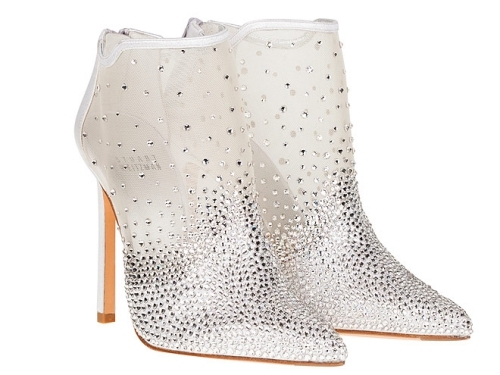 Stuart Weitzman sở hữu thiết kế lạ mắt nhất, với ý tưởng về một công chúa Lọ Lem thời hiện đại, mang boot lưới cao gót, đính pha lê đầy cá tính.