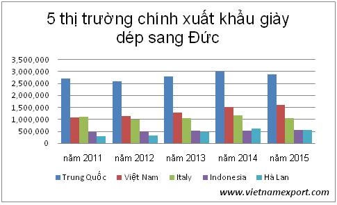 Với mức tăng trưởng ổn định 6% giai đoạn 2011-2015, Đức là thị trường nhập khẩu giày dép ổn định, tiềm năng đối với nhiều quốc gia xuất khẩu. Việt Nam hiện đang là nhà xuất khẩu giày dép lớn thứ 2 tại thị trường này. Hàng năm, Đức chi trên 9 tỷ USD cho nhập khẩu giày dép, từ nhiều thị trường lớn như Trung Quốc, Việt Nam, Italy..