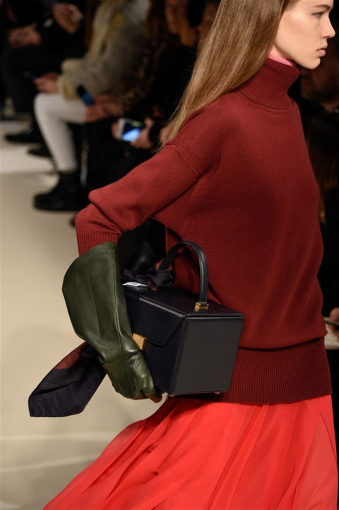 Những chiếc túi dạng hộp rất được ưu ái tại Tuần lễ thời trang Thu-Đông 2017/18. Victoria Beckham mang tới Tuần lễ thời trang New York chiếc túi Vanity Case trong tông màu đen và đỏ đun sang trọng. Trong khi đó dáng túi hộp tròn cũng xuất hiện từ BST Thu-Đông của Mulberry, Chanel, Marchesa và John Galliano.