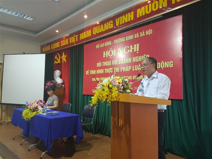 Sáng 21/7, dưới sự chủ trì của Ông Doãn Mậu Diệp - Thứ trưởng Bộ LĐTB và XH và đại diện các Vụ, Ban ngành liên quan đã nghe kiến nghị, giải đáp thắc mắc của doanh nghiệp liên quan đến việc thực thi pháp luật lao động.