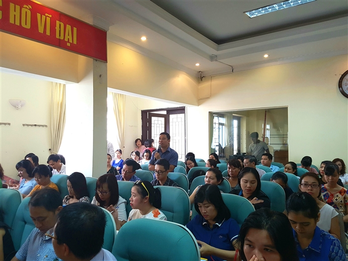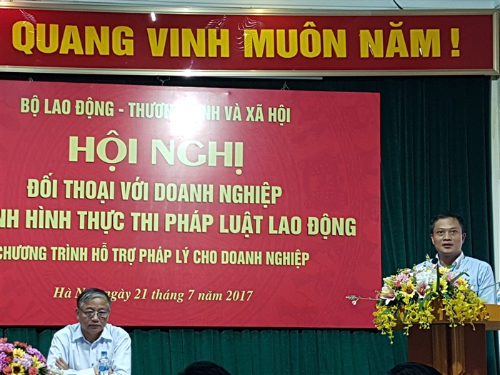 Sau phần trình bày của ông Mai Đức Thiện - Phó Vụ trưởng Vụ Pháp chế về các nội dung chính liên quan tới chính sách, pháp luật về lao động năm 2017 là phần trao đổi rất sôi nổi và tâm huyết của đại diện các doanh nghiệp đến từ: May 10, Công ty Hóa phẩm Dầu Khí, 1 công ty về Dệt may và đặc biệt là Công ty CP dịch vụ môi trường Từ Liêm.