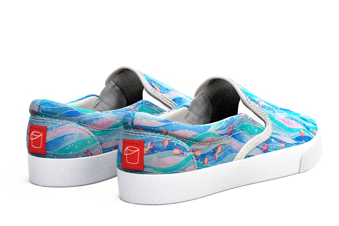 Một đôi Bucketfeet Sneaker có tên gọi "Down by the Water", thiết kế của họa sĩ Timmy Timore (Footwearnews.com)