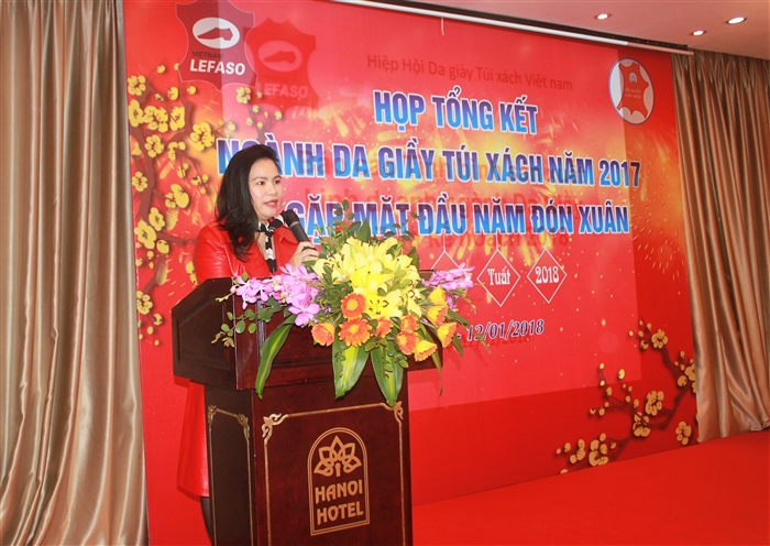 Mở đầu buổi lễ, bà Phan Thị Thanh Xuân - Phó Chủ tịch kiêm Tổng thư ký Hiệp hội trình bày báo cáo kết quả hoạt động sản xuất kinh doanh Ngành Da – Giầy năm 2017 và Kế hoạch triển khai nhiệm vụ 2018. Nội dung báo cáo nêu rõ những lợi thế và thành tích của ngành trong năm 2017, nhưng cũng chỉ ra những thách thức trong thời gian tới khi thị trường ngày có sự cạnh tranh khốc liệt hơn từ những quốc gia mới nổi. Qua đó, báo cáo cũng đã đưa ra những kiến nghị để tăng cường sức cạnh tranh của ngành trong thời gian tới.