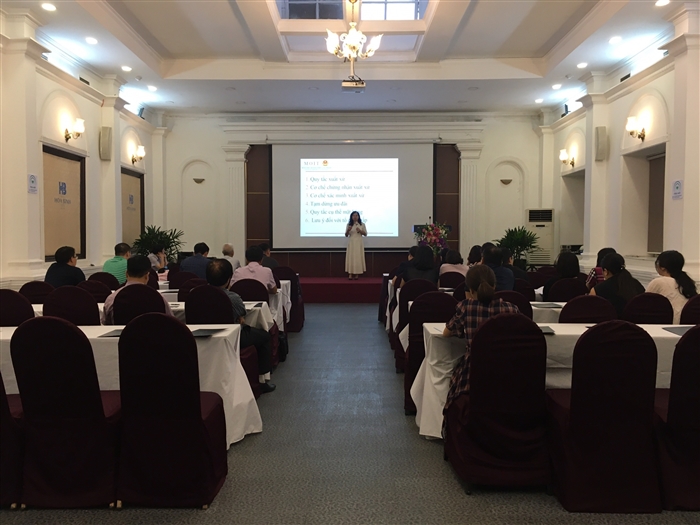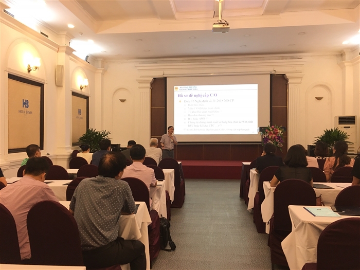 Ông Vũ Hùng Thịnh - Phó Trưởng phòng - Phòng xuất xứ hàng hóa - Cục Xuất Nhập Khẩu - Bộ Công Thương trình bày tại Hội nghị
